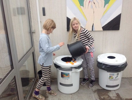I hver klasse er der en opsamlingsspand som dagligt bliver fyldt af elever der medbringer hjemmefra og fra dagens skolemælk.