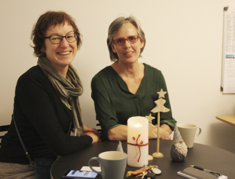 Annamette Stenager (tv.) og Gertrud Rostgaard, teamledere ved henholdsvis Bøgehaven og Tjørnehaven i Galten, fortæller om hverdagen og udfordringerne ved at yde omsorg og pleje af demente beboere på lokalcentrene i Galten.