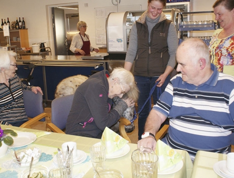 Det var en fantastisk oplevelse for beboerne, da den meget søde og tillidsfulde pony modtog klap og gulerødder i cafeen.