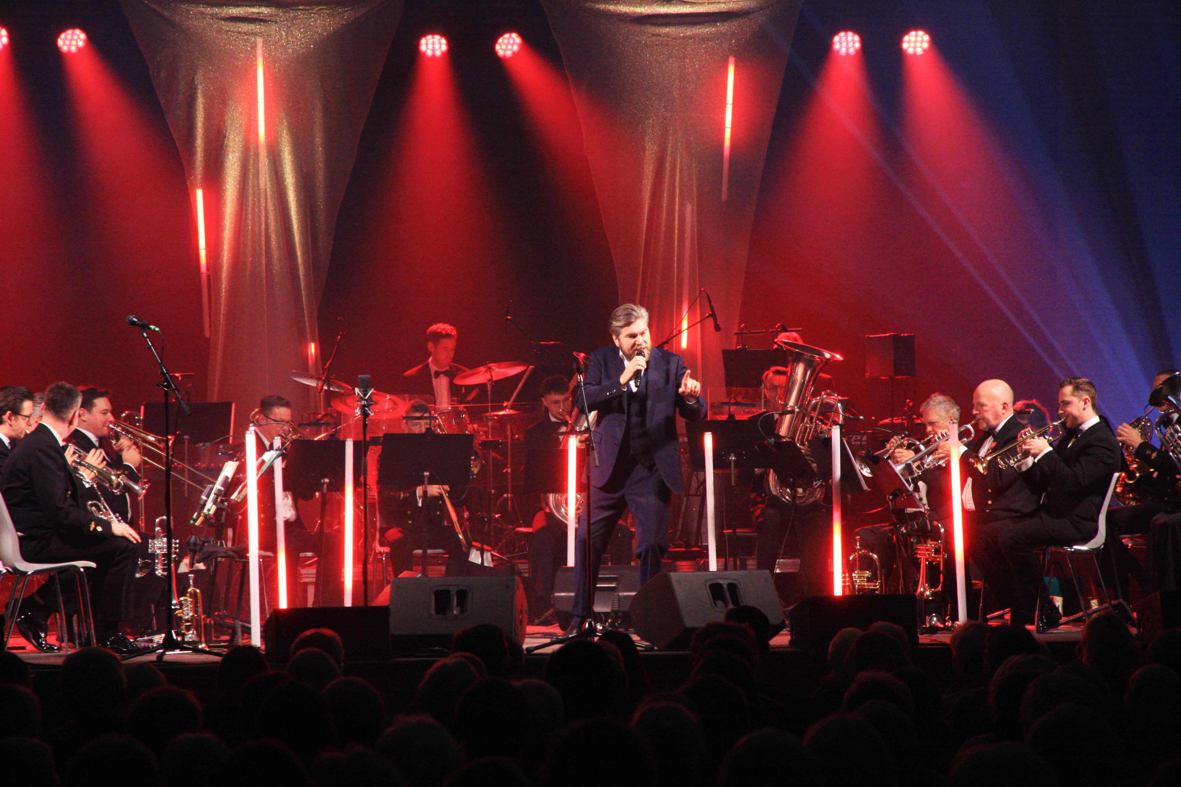 Tilbage i 2017 var skuespiller og entertainer Rasmus Bjerg for første gang solist ved Prinsens Musikkorps' nytårskoncert i Galten-hallen.