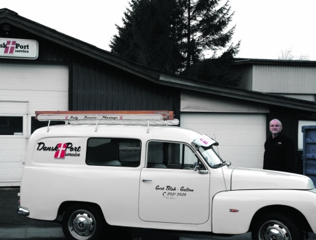 Gert Blak ejer denne Volvo 210 fra 1966, som han ynder at køre rundt i - mest for at fange opmærksomhed. På skærmen ved forruden står med store bogstaver "Portmanden". »Det er blikfang, folk lægger mærke til mig, når jeg kommer kørende,« siger han. Som reel firmabil har han dog en mere moderne en af slagsen.