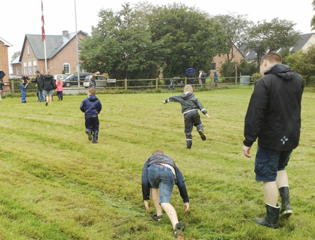 Til eftermiddagsløjerne mødte godt 60 mennesker op iført behørigt regntøj, og stort set hele byfestens program blev gennemført trods regn det meste af eftermiddagen.