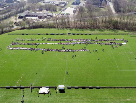 Som led i trivsels-projektet 'Bevægelse i fællesskab' dannede en af fodboldbanerne på Klank Idrætsanlæg i fredags rammen om et rekordforsøg.