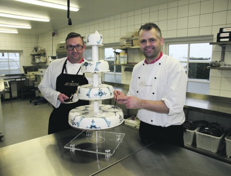 Et splinternyt storkøkken på over 200 kvm giver nye muligheder på Restaurant Lillering Skov, hvor virksomhedens afdeling Desserten.dk nu er flyttet ind. Her ses Heine Schriver (t.v.) og chefkonditor for Desserten.dk Brian Brøckner i færd med at pynte en "muselmalet" bryllupskage i de nye køkkenfaciliteter, der tidligere husede Lillering Skovs vestlige festlokale.