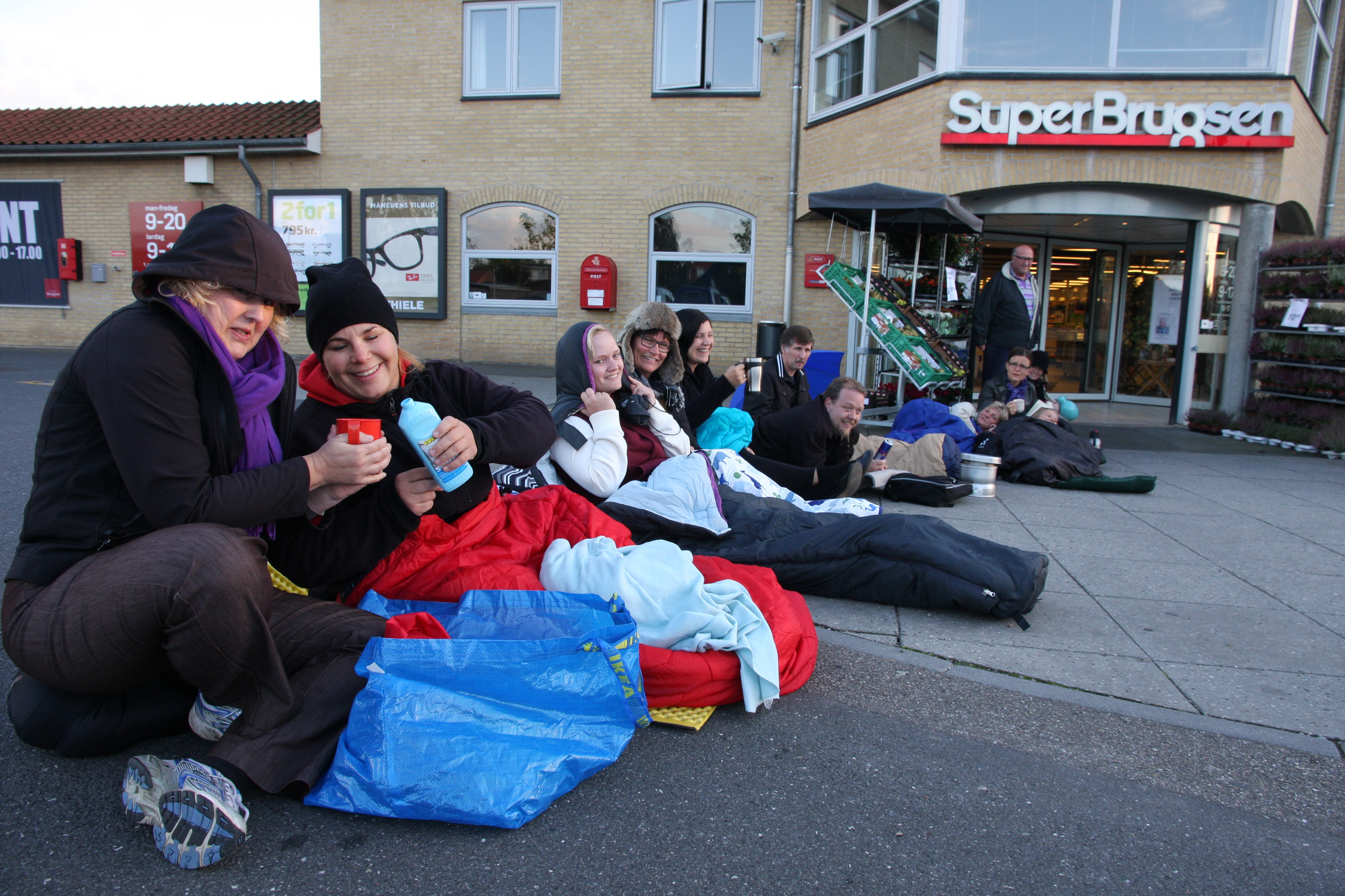 Et særegent syn mødte de handlende foran SuperBrugsen mandag i sidste uge. For at skabe opmærksomhed omkring at billetsalget til årets Galten-revy nu er åbnet, havde revytruppen aftenen forinden starten på billetsalget linet sig op med soveposer i en kø foran Brugsen for at visualisere, at det godt kan komme til at knibe med at få billet, hvis ikke man er hurtig på aftrækkeren.