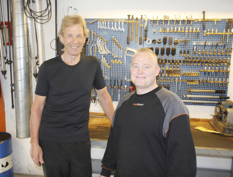 »Snakken førte til en beslutning om, at Skovby Autoværksted skulle tilføres nye kræfter. Spørgsmålet var herefter: Var vi nu også klar til det? Ja vi er klar. Vi har løst mange opgaver gennem tiden, så vi løser helt sikkert også denne,« siger 68-årige Preben Jessen om den naturligvis vemodige proces med at slippe sit livsværk - selv om virksomheden videreføres i trygge hænder hos 36-årige Martin Jensen.