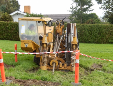 Underboringen sker automatisk med cirka 4 m af gangen. Rørforlængelserne ligger til højre i Danborings maskine. Når boringen er kommet frem, forbindes den med den nye vandledning, som så trækkes tilbage. Danboring underborede cirka 200 m i løbet af 45 minutter. Den længste underboring var under Kristian Søbergs mark, hvor man underborede 402 meter i en dybde af op til 3,5 meter.