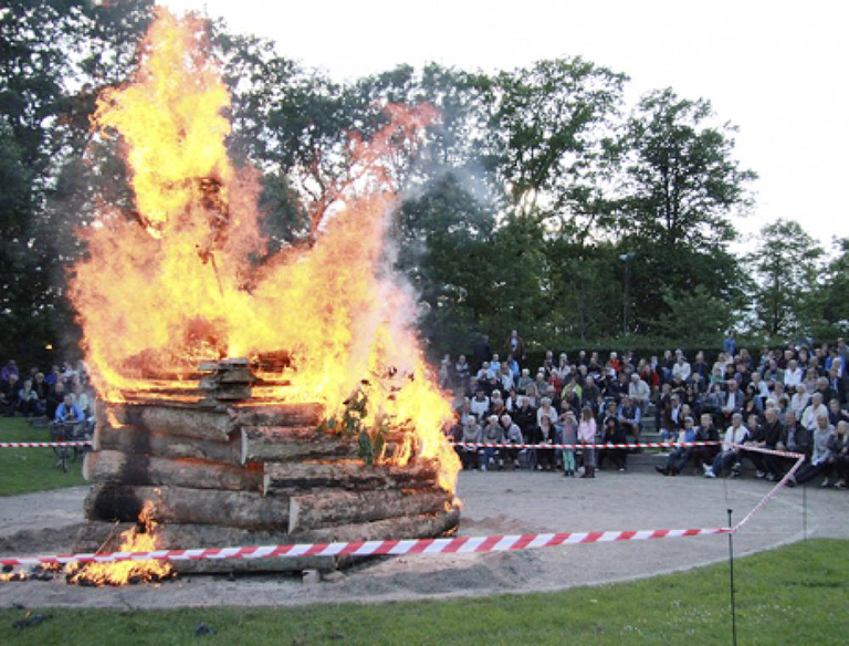 Kl. 19.30 tændes bålet, for at børnefamilierne også kan være med.