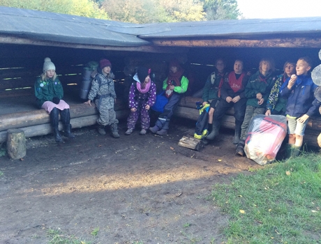Anine, Signe, Emma, Vigga, Aleksander, Sebastian, Kasper, William og Rasmus på shelter-tur.