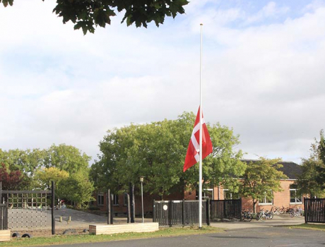 »Vi havde en morgensamling, som vi ellers ikke ville have haft, og jeg fortalte, hvorfor vi havde flaget på halv, og hvad der var sket for det tilfælde, at nogen ikke skulle have hørt om baggrunden. Jeg fortalte, at vi kunne konstatere, at den ældre dame var fundet død, og vi holdt et øjebliks stilhed og sendte varme tanker til de pårørende,« fortæller skoleleder Nils Vangkilde.