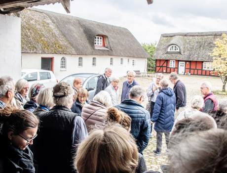 Efter velkomsten i Herskind Forsamlingshus gik alle den korte vej til Herskind Søndergård, hvor Inge Lorenzen bød velkommen til at se på den 1,1 hektar store grund og bygninger, hvor det fremtidige seniorfællesskab skal dannes.
