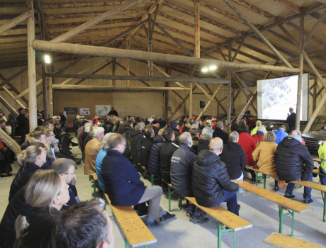 Godsejer Jesper Ungstrup Nielsen takkede for det store fremmøde og redegjorde indledningsvis for de overordnede linier i den ansøgning som embedsmænd hos Skanderborg Kommune i øjeblikket behandler.