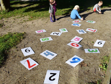 Børnenes fotos af tal, skrevet eller bygget af børn og fundet rundt omkring i børnehaven eller på vores udeområde.