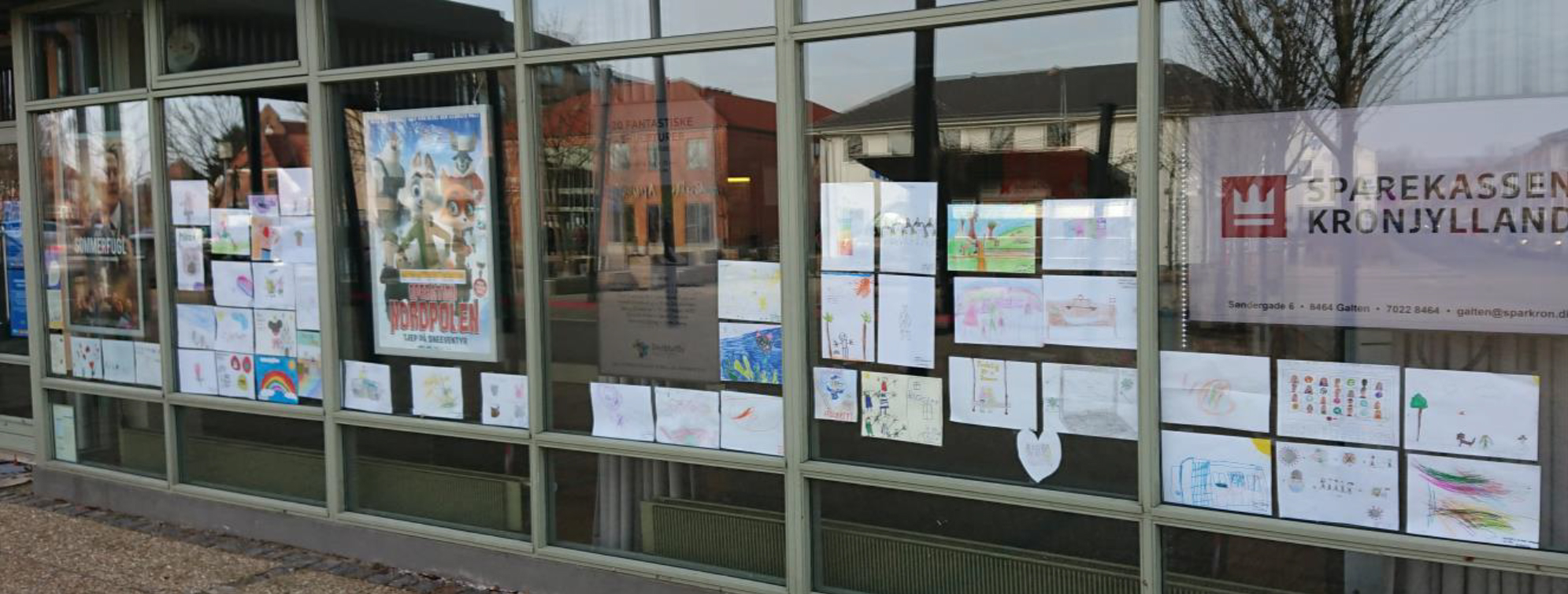 Det viste sig, at mange børn havde lyst til at bidrage. 48 fine tegninger pryder i øjeblikket vinduerne i Bio Huset.
