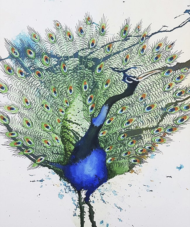 »Jeg arbejder dels med traditionel akrylmaling på lærred, dels med tyndtflydende maling i form af tusch, akvarel og alkohol ink,« siger Christina Monrad.