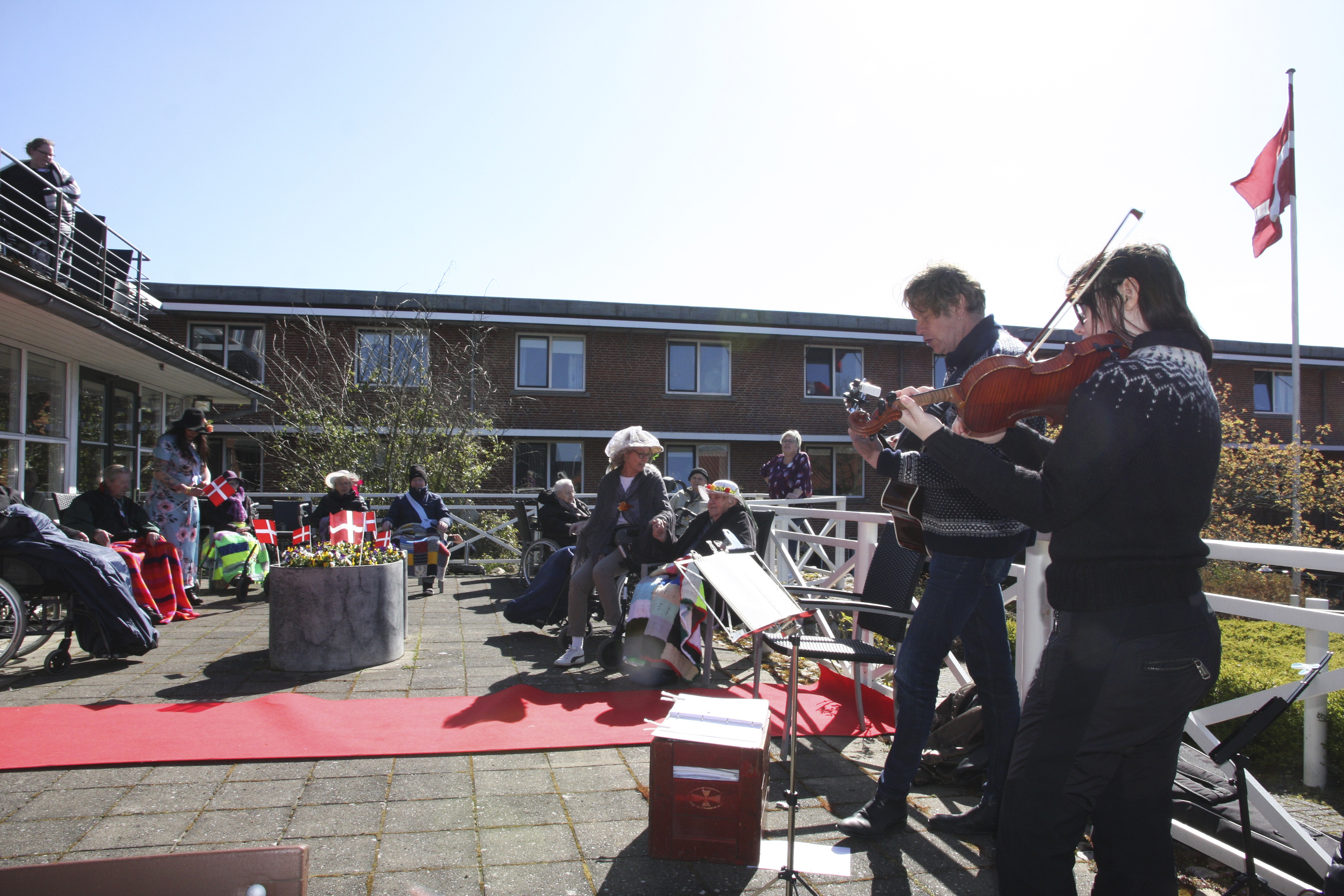 Også på plejecentrets demensafsnit Bøgehaven blev dronningens fødselsdag fejret behørigt med fællessang i TV, lagkage og masser af flag.