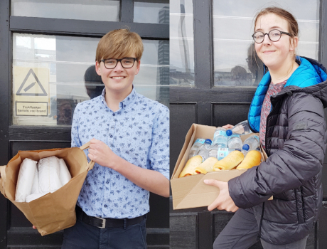 Andreas Rasmussen (tv) og Irvin Beckovic med favnen fuld af sandwiches, pølsehorn og vandflasker, klar til en rundtur blandt århusianske hjemløse.