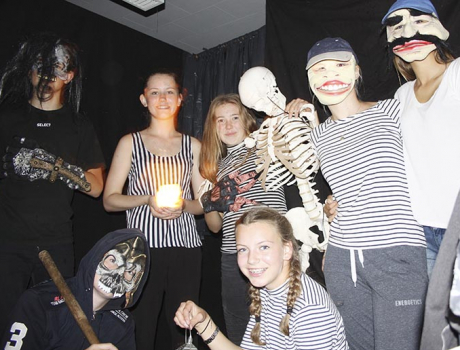 Skolens 9. klasse stod for uhygge og gys i spøgelseshuset. At dømme på de skræmte gæsters reaktion klarede de opgaven ganske godt.