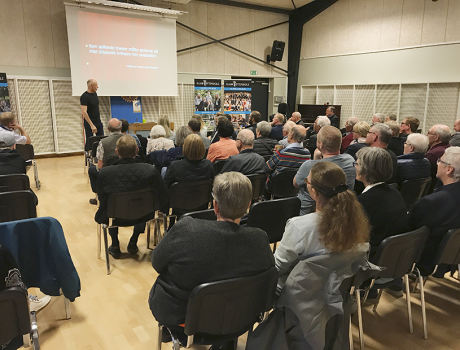Et meget levende foredrag der inddrog de mange tilhørere med diverse håndoprakte afstemninger.