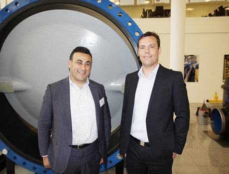 Den konservative folketingskandidat, Naser Khader i selskab med juridisk chef i AVK, Jakob Kjær ved besøget hos AVK i Skovby i tirsdags.