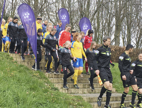 Hånd i hånd med idolerne løb Galten FS' U11- og U12-fodboldpiger på banen da Skovbakken i lørdags mødte
