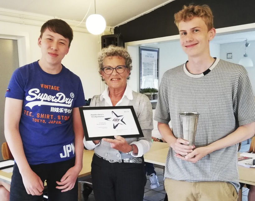 På vegne af Juniorerne fik Jonathan Hartmann (t.v.) og Marius Andersen pokalen overrakt af Barbara Koch fra Tennisafdelingen.